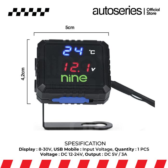 Voltmeter Digital Motor 3 in1 Universal USB On Off Suhu Ampere Digital VM2 - LX-TRIX AUTOSERIES JKT