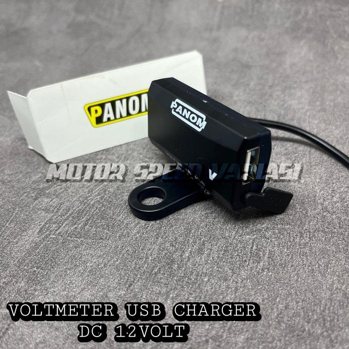 Voltmeter + USB Charging 5V 2A Breket Spion Panom Voltmeter motor usb charger