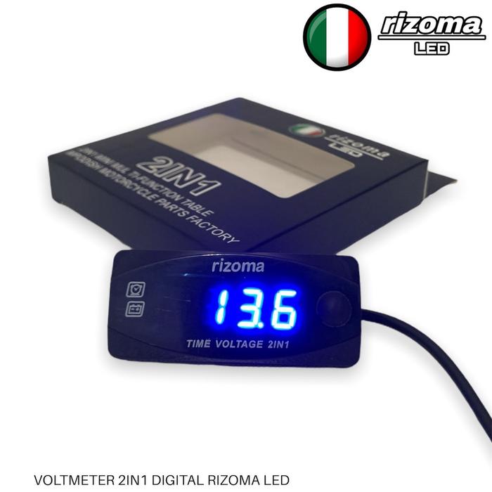 VOLTMETER VOLTMETER 2IN1 RIZOMA LED AKI JAM UNIVERSAL - Biru 2in1 Rizoma