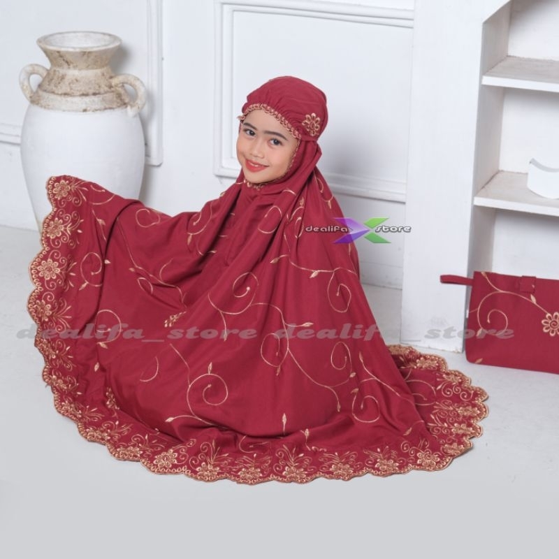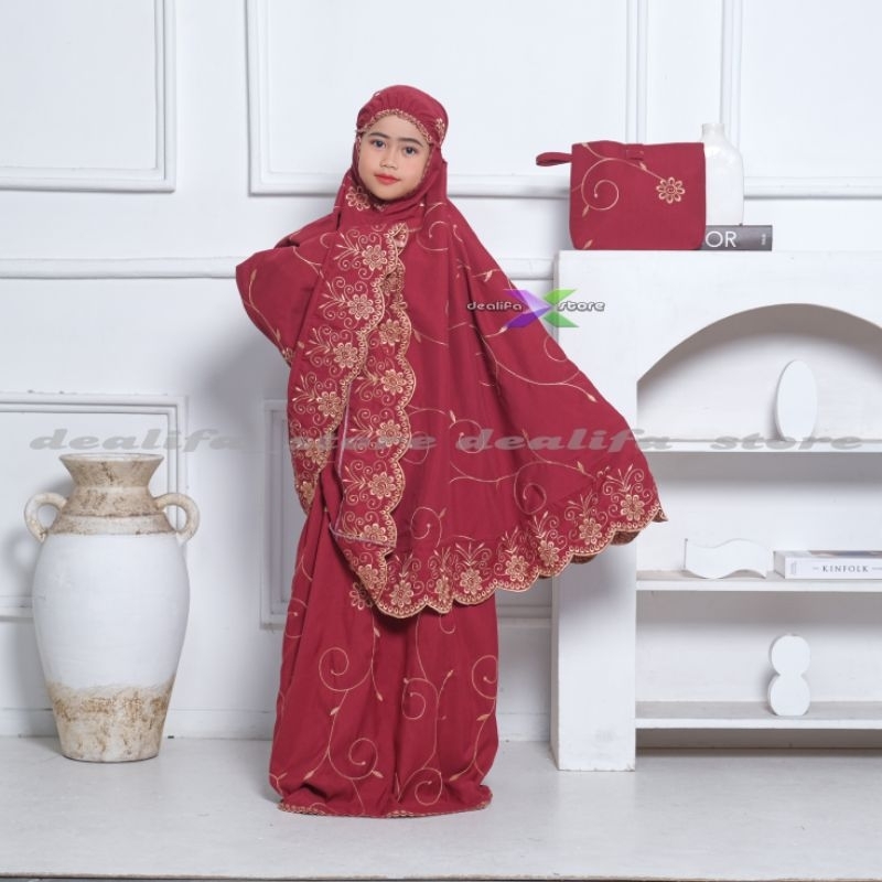 DEALIFA - Mukena Anak Usia 5-11 Tahun Gracella Ada Tas Exclusive Full Bordir Katun Premium