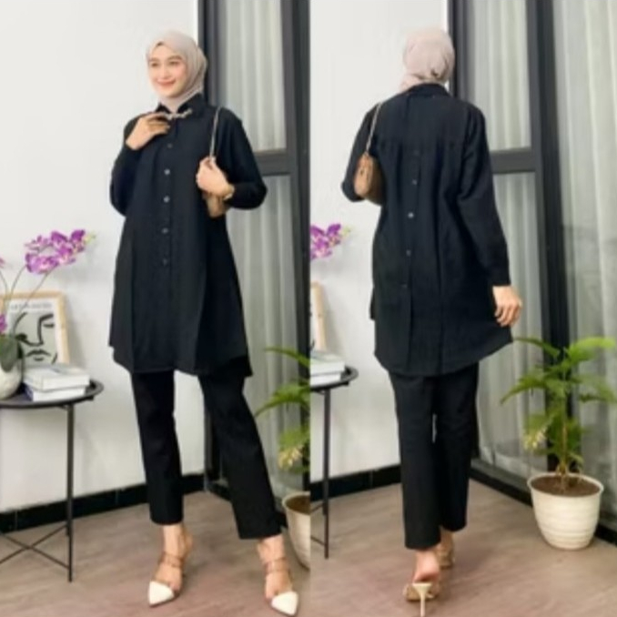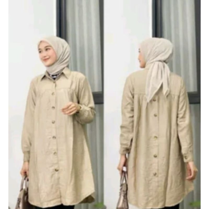 Zella Tunik polos polo linen kancing depan belakang|| kemeja wanita polos tunik pololinen
