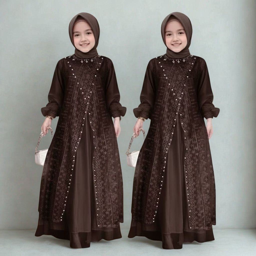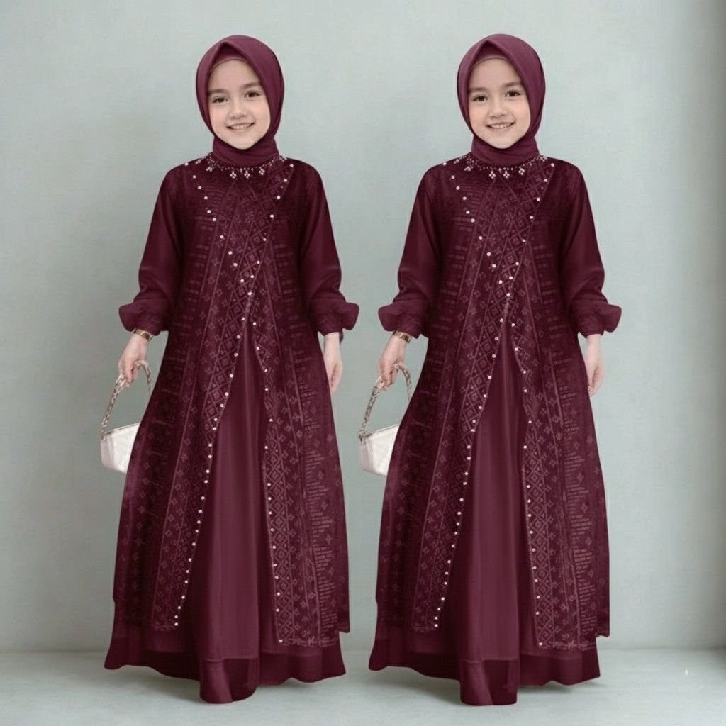 RAYLIN KIDS Gamis Kondangan Anak Dress Brukat Anak Gamis Anak Murah Mahogany Gamis Muslim Anak Terlaris Gamis Lebaran Fa