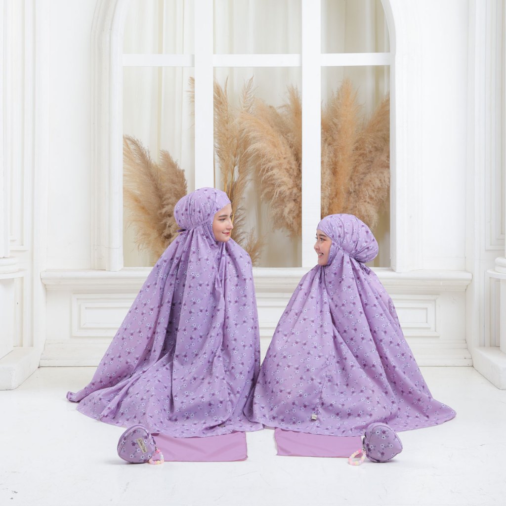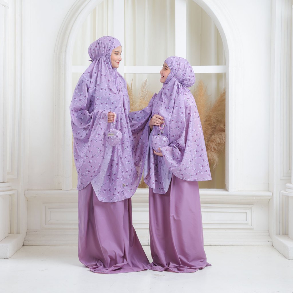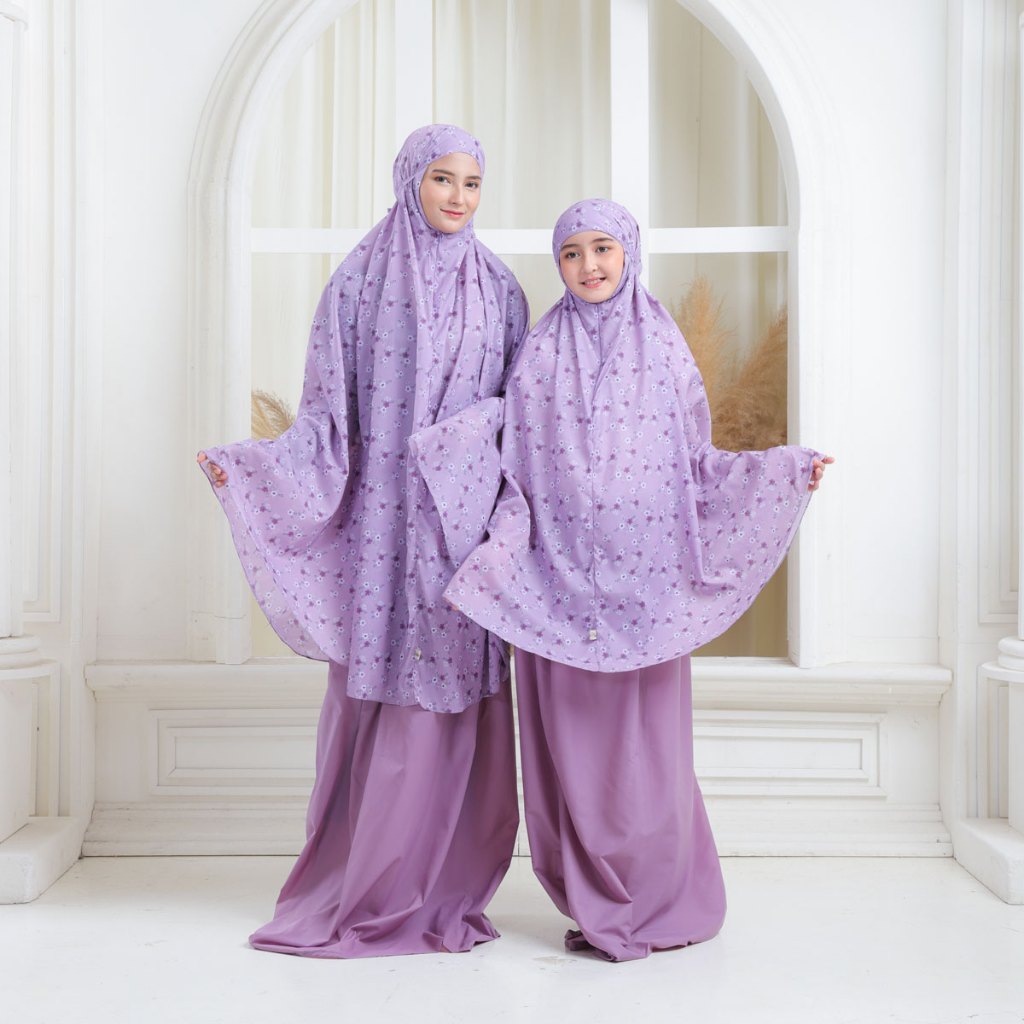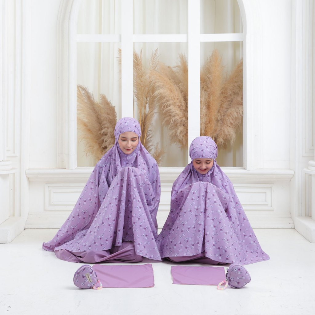 Mukena Couple Ibu dan Anak Perempuan Traveling Mini Pouch 2in1 Resleting Parasut Motif Premium