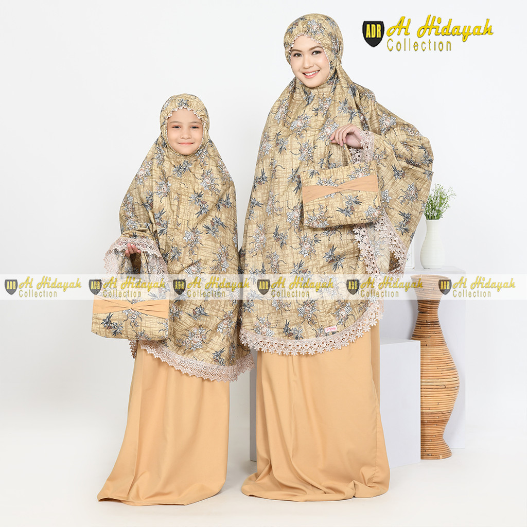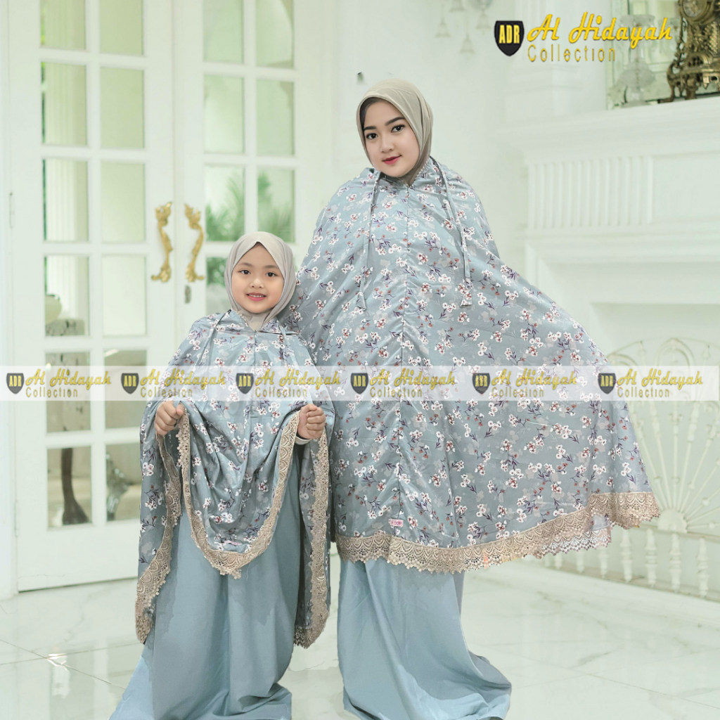 Mukena Couple Ibu Dan Anak Katun Motif Renda Mewah Jumbo Mukenah Premium Resleting Dagu