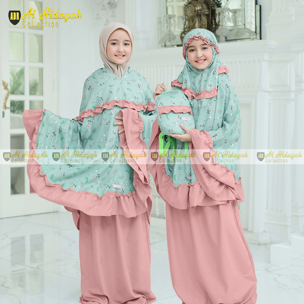 Mukena Anak Tas Ransel Resleting Dagu Rayon Premium Motif Mukenah 2 in 1 TK SD Tanggung 3 4 5 6 7 8 9 10 11 12 13 14 15