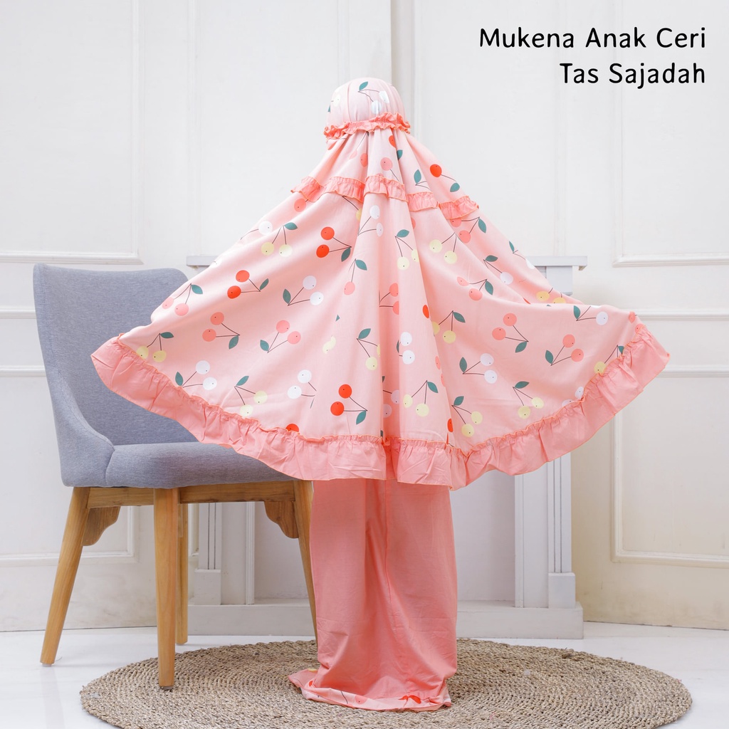 jumuna - Mukena Anak Tas sajadah Motif Ceri & Popie Pink