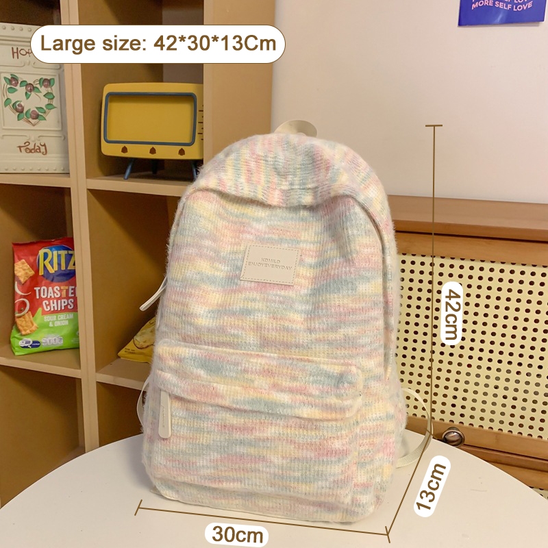 Pinkbubbly.[Ready] Pelangi mewah rajutan tas sekolah wanita Jepang tas bahu mini ransel siswa fashion bag kuliah Import