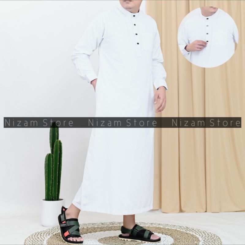 Gamis Pria Jubah Polos Lengan Manset Kancing Snap Pria Dewasa Muslim Putih Hitam Haji Umroh