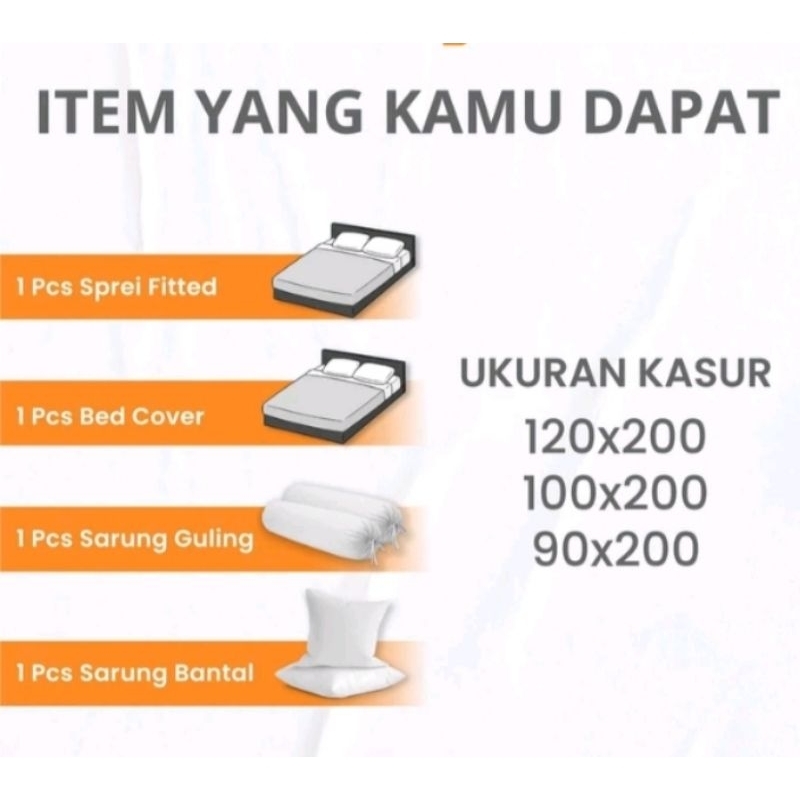 Bedcover Set Polos Premium Pakai Anti Geser + Bonus 2 Sarung Bantal