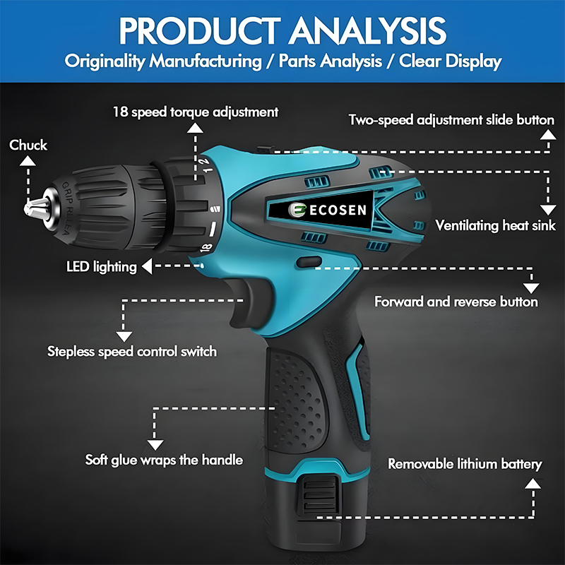ECOSEN Mesin Bor Baterai Tangan 98V Bor Listrik Bor cas Bor mini Bor portable Bor Portable Obeng listrik Cordless Drill