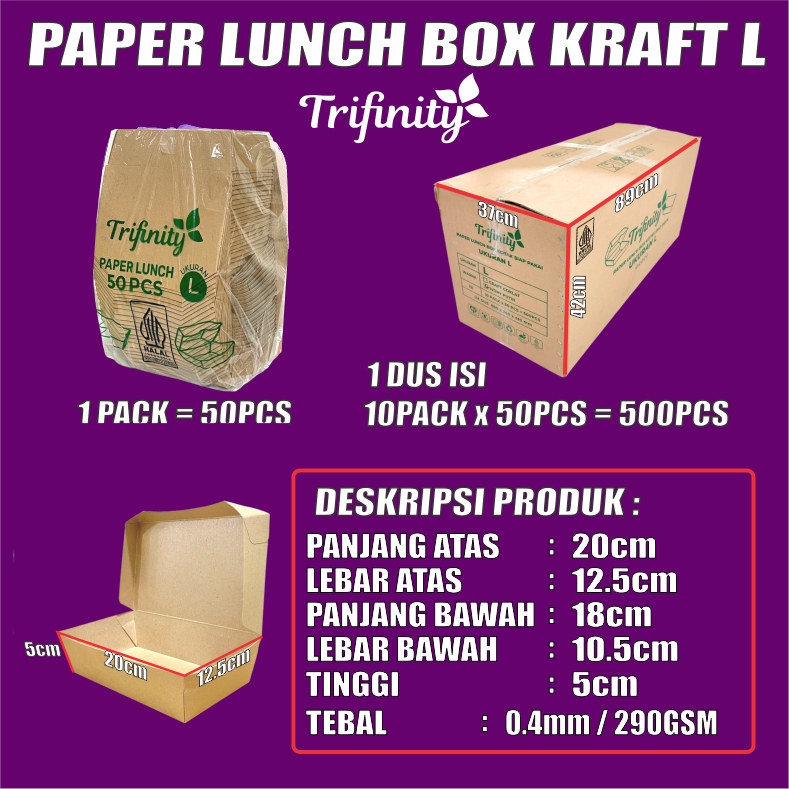 Paper Lunch Box Food Tray Kotak Makan Kertas Tebal 28gr Halal S M L Ivory Putih Kraft Coklat Dus JSK Murah Gratis Ongkir