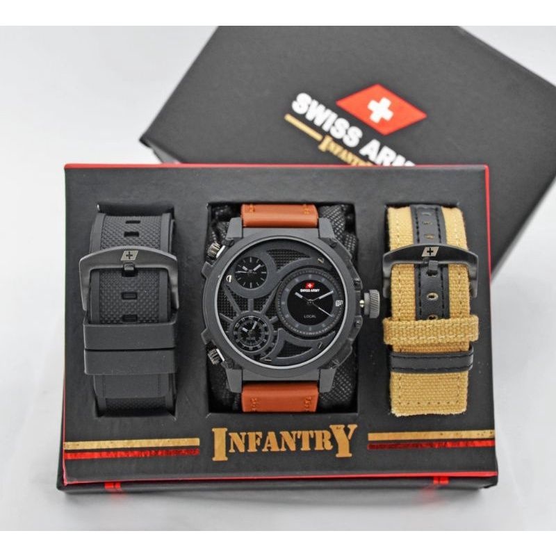 Jam Tangan Pria Swiss Infinity 3Time Kulit Set Paket