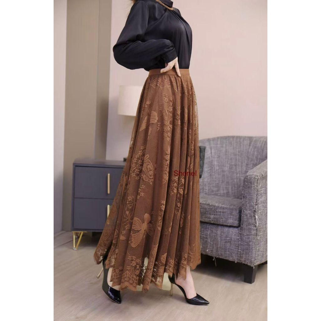 Heynmomo Rok Brukat Panjang Lace Maxi Layers Skirt Elegan Hijabers Premium Renda Bkk Kondangan Pesta