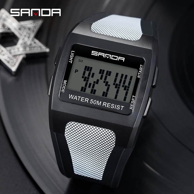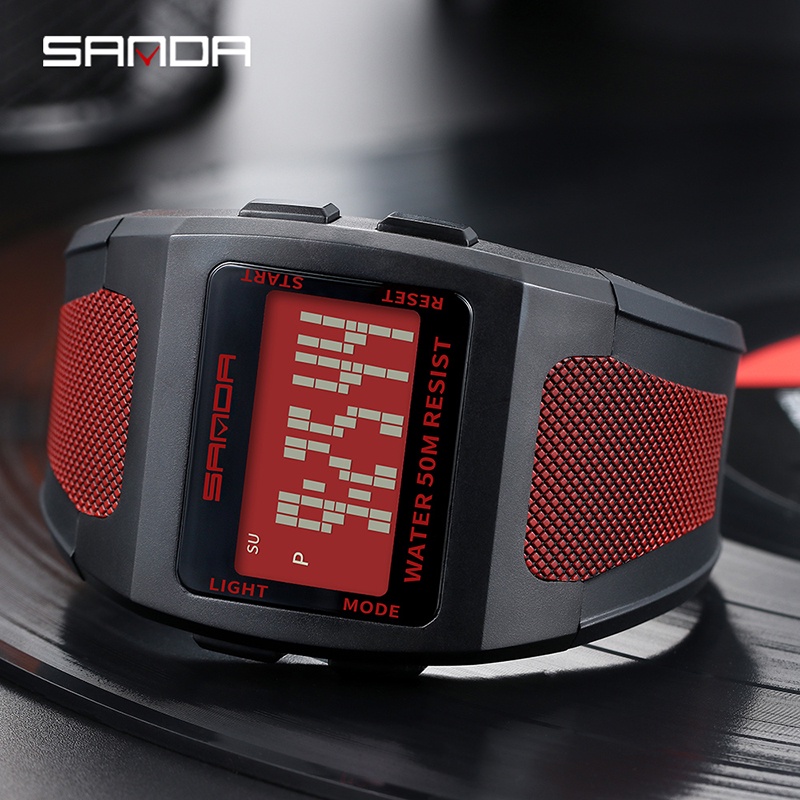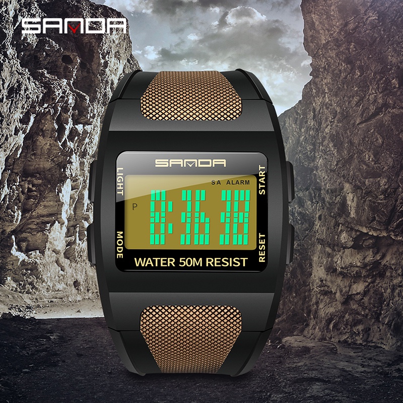 SANDA 222 Jam Tangan Pria Digital Sport EL Backlight Tali Rubber Anti air