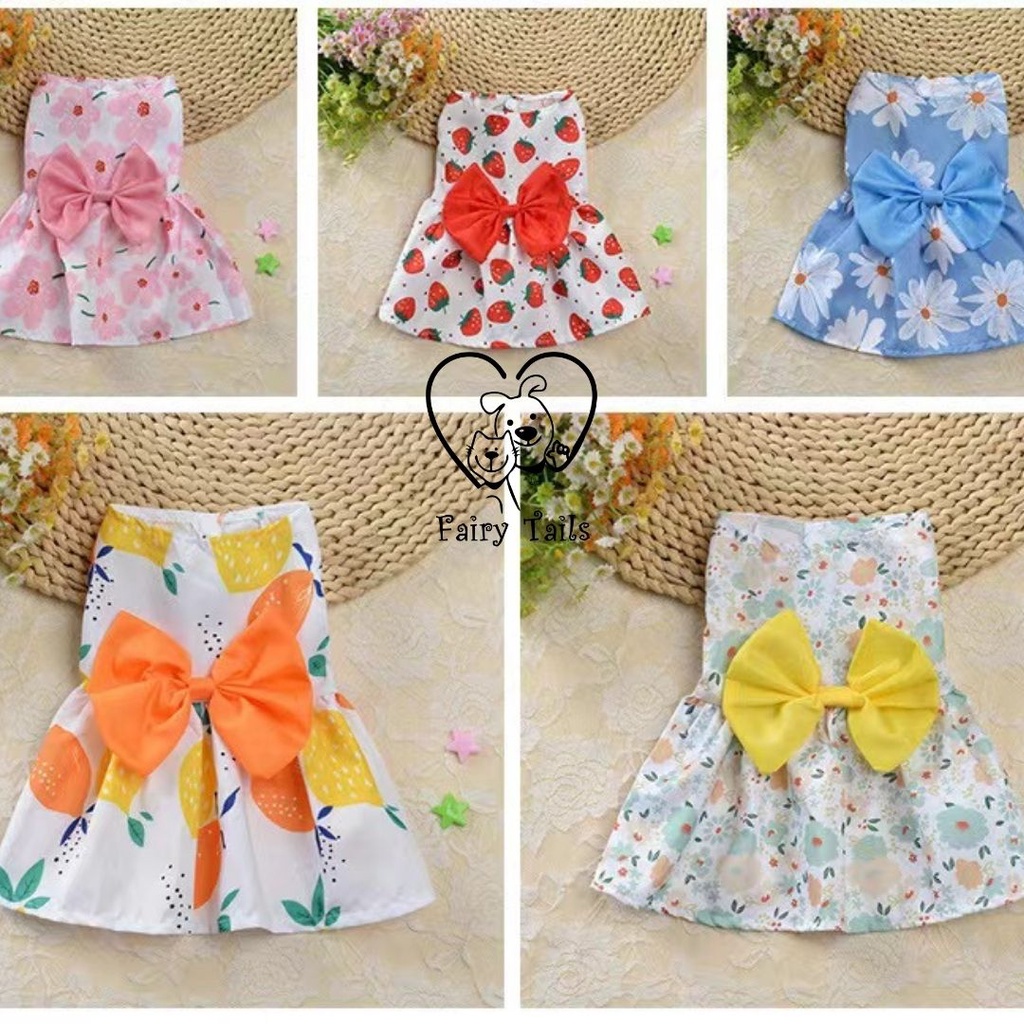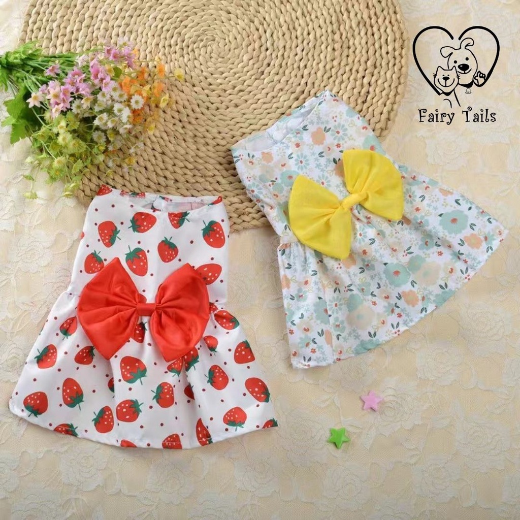 FLASH SALE Party Dress Gaun Pesta Motif Bunga Untuk Anjing dan Kucing Clothes Baju Pakaian Anabul Gown Dress for Pet Dog Cat Red Strawberry Floral Tropical Dress