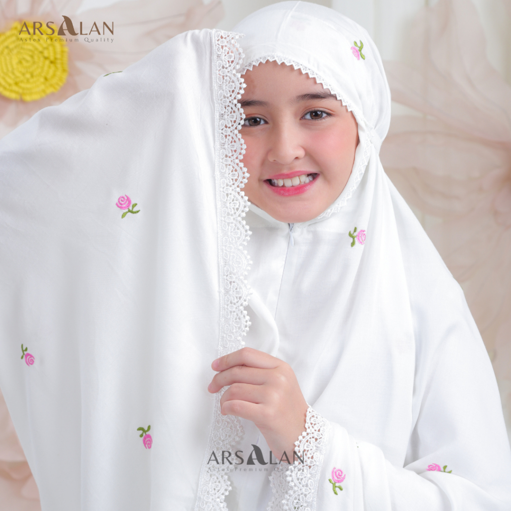 Arsalan - Mukena Anak dan Mukena Dewasa Couple Rayon Bordir | Arafah White Series 2in1