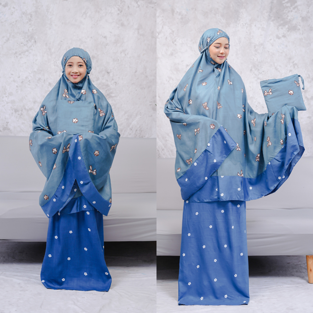 MUKENA COUPLE IBU DAN ANAK JUMBO NARNIA REMPEL Atasan Bawahan Panjang Bunga Motif