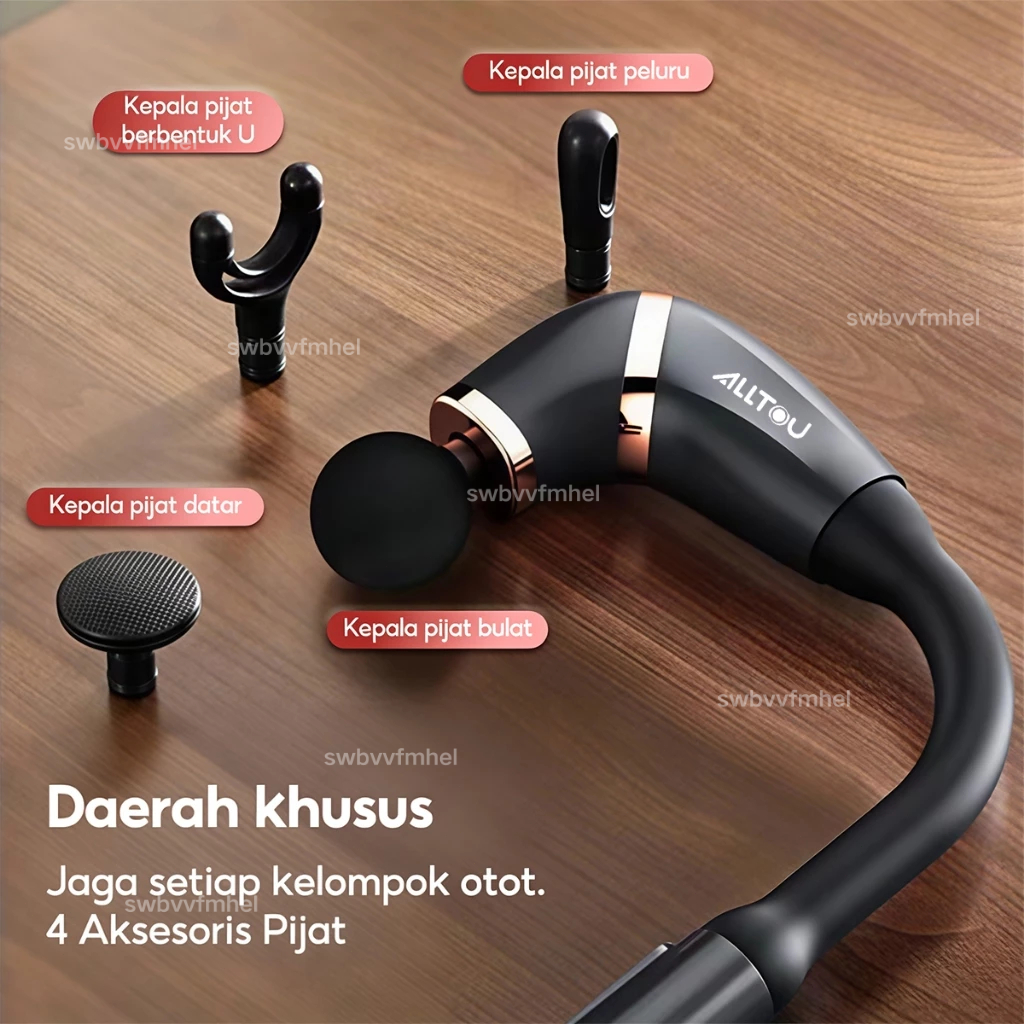 ALLTOU 4 In 1 Massage Gun Alat Pijat Elektrik Getar Deep Tissue Muscle Smart Alat Pijat dengan Banyak Kepala Pijat Long