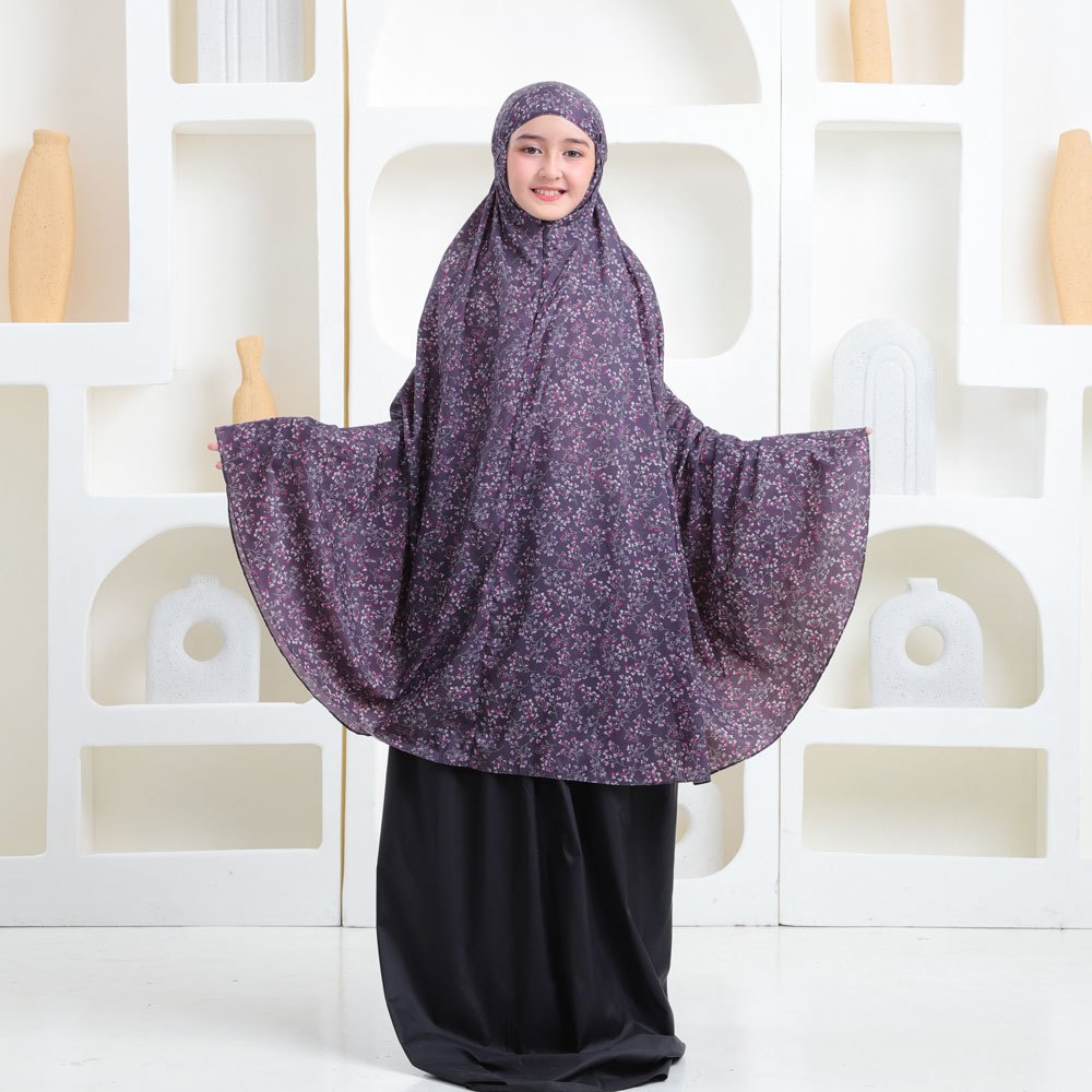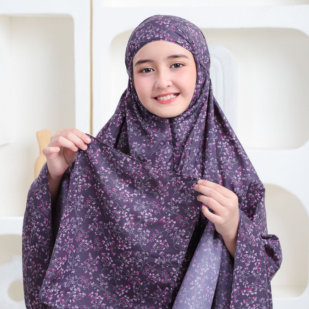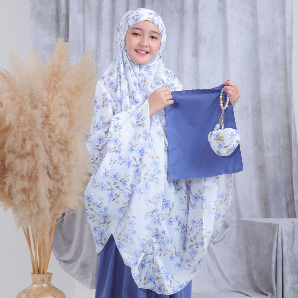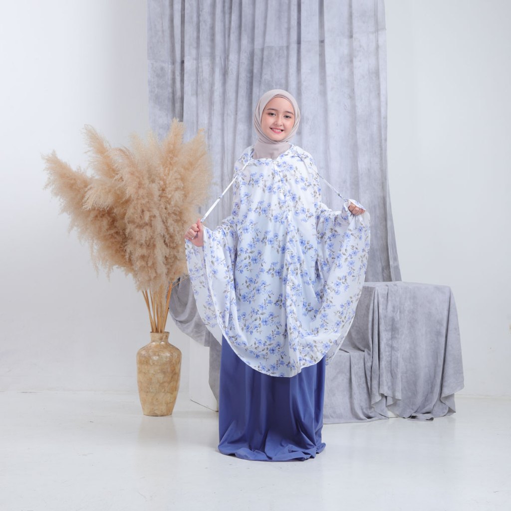 Mukena Traveling Anak Usia 6-12th Dagu Resleting 2in1 Parasut Korea Motif Adem Lembut
