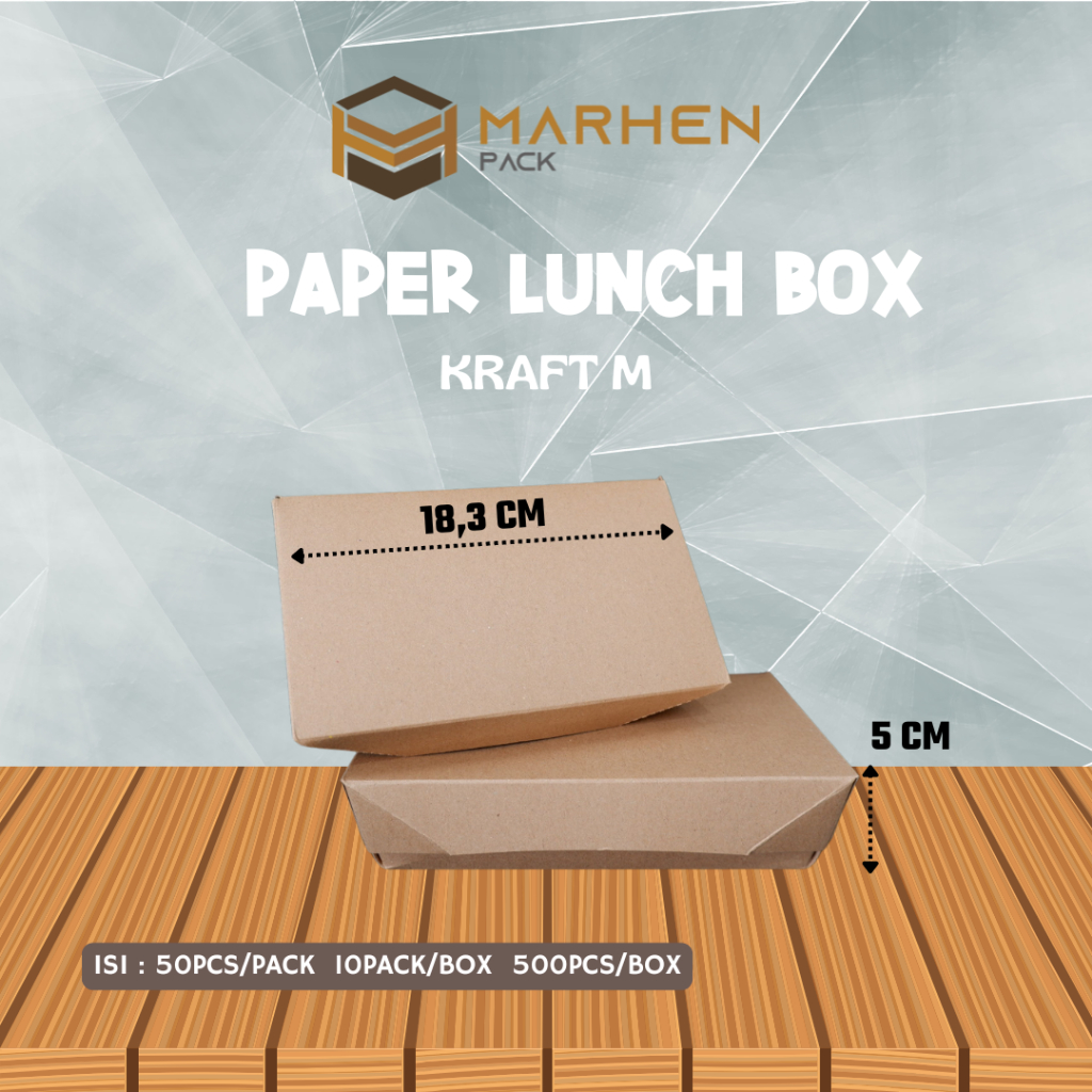 PAPER LUNCH BOX BAHAN KRAFT/ IVORY FULL LAMINASI SIZE S / M / L / PAPER TRAY-Isi 50bh / KOTAK MAKAN Murah Gratis Ongkir