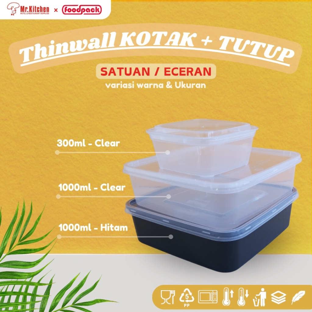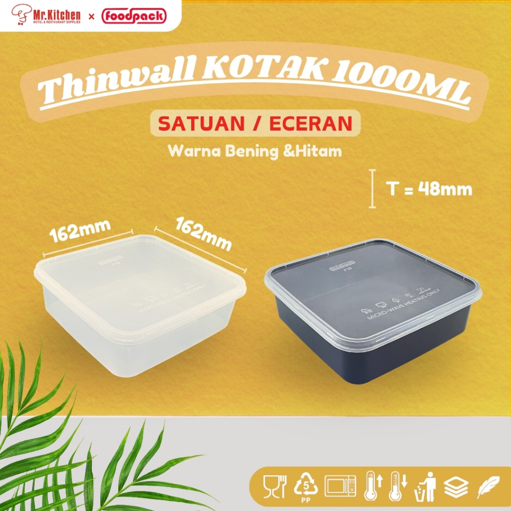 1000ml Thinwall KOTAK + TUTUP / Kotak Makan Plastik 1000ml Murah Gratis Ongkir