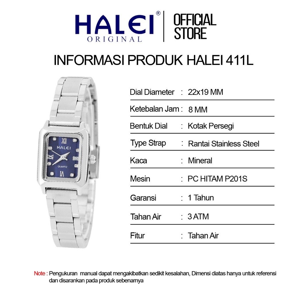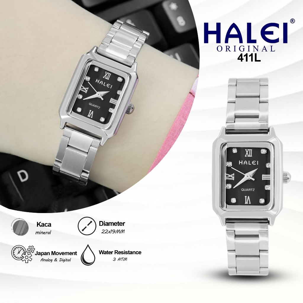 Halei Ind 411 L - Bergaransi Jam Tangan Halei Wanita Fashion Kasual Diamond Rantai Stainless Anti Air Japan Movement
