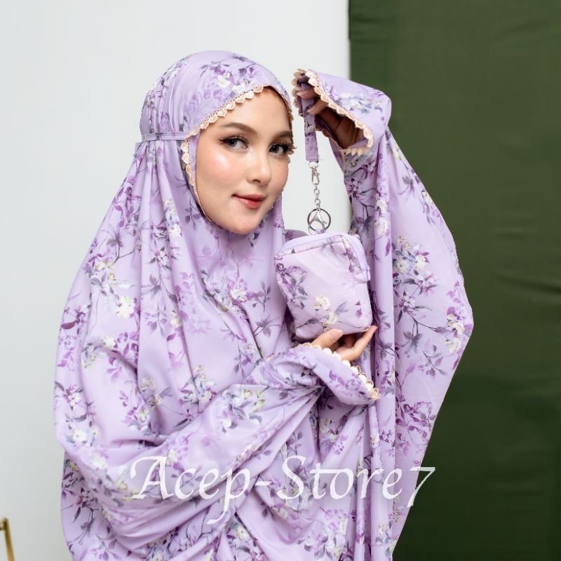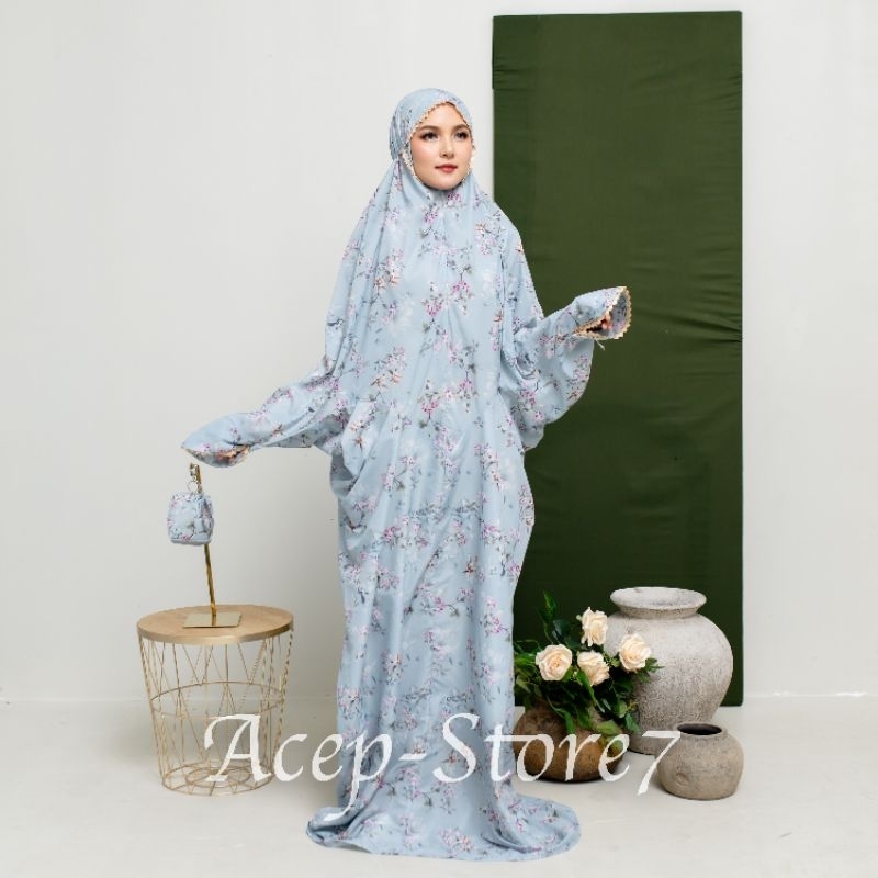 Mukena Treveling Terusan Resleting Mini Pouch Parasut Motif Premium