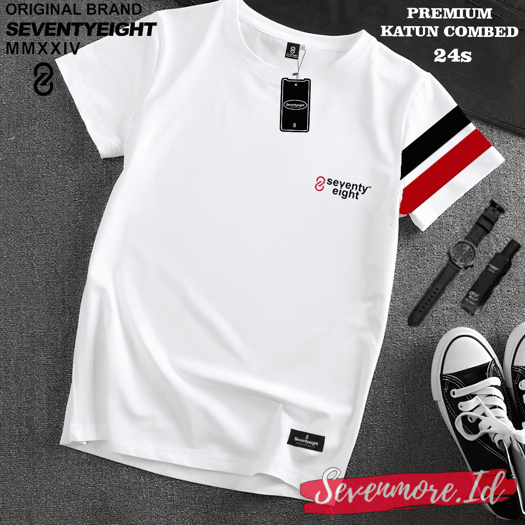 SEVENTYEIGHT Tshirt Putih Pria Wanita Motif VACATIONS bahan Katun Combed 24s /Baju Wanita