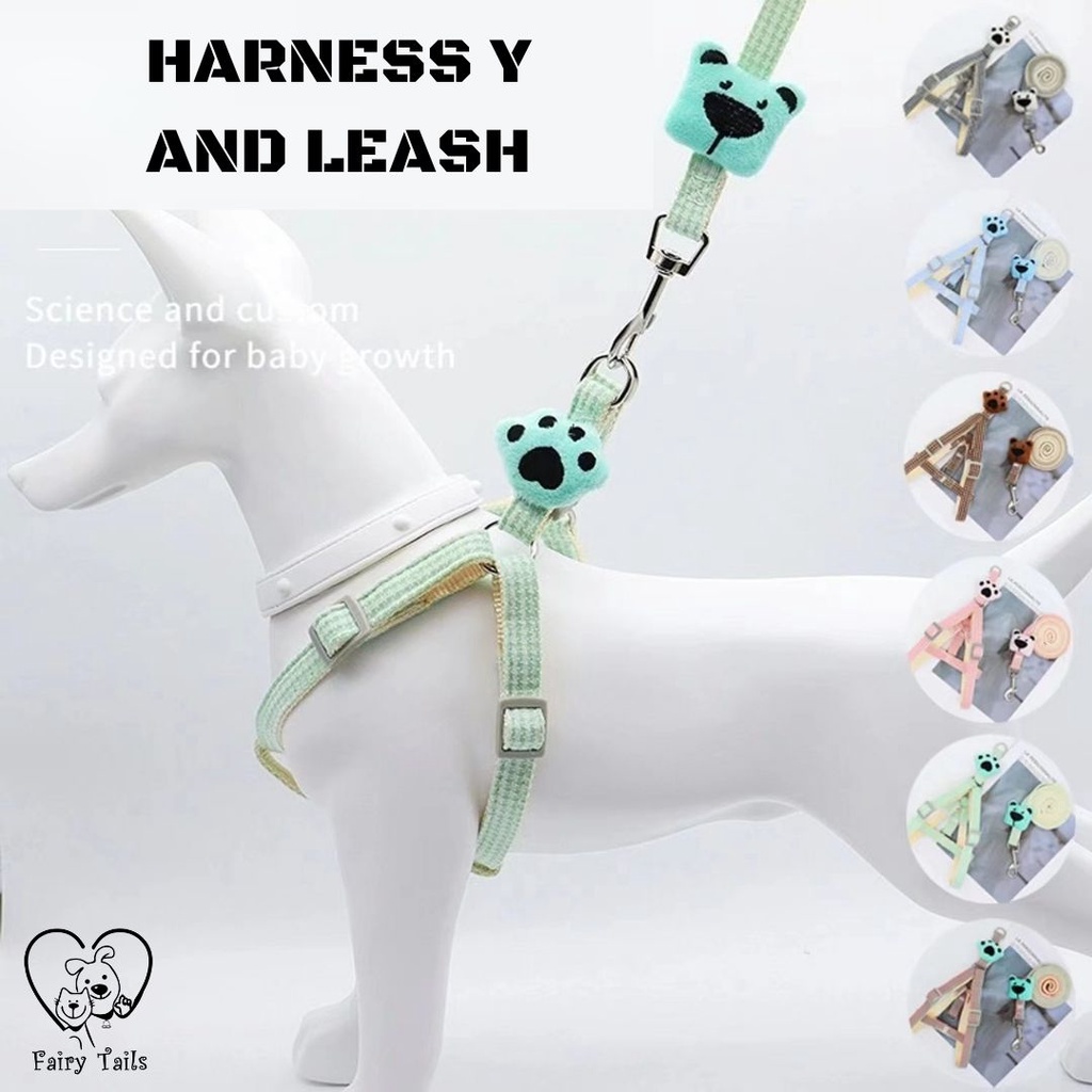 FLASH SALE Pet Harness and Leash Tali Tuntun Dengan Strap Dada Y Model Paw dan Kepala Beruang Untuk Outing Anjing dan Kucing Anabul Y Harness Dog Leash Adjustable