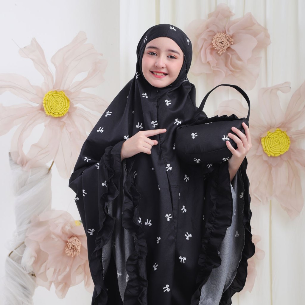 Mukena Anak Usia 6-12Th Katun Motif Remple Premium Kombinasi Resleting Dagu 2in1