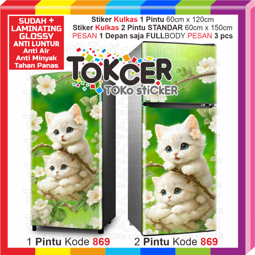 STIKER Kulkas LAMINATING GLOSSY Anti LUNTUR uk 1 Pintu atau 2 Pintu Motif KUCING