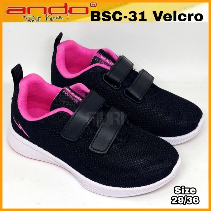 ANDO Sepatu Sekolah Anak Perempuan Cewek Kecil Hitam Pink Rebecca Original Perekat Size 29 sd 36