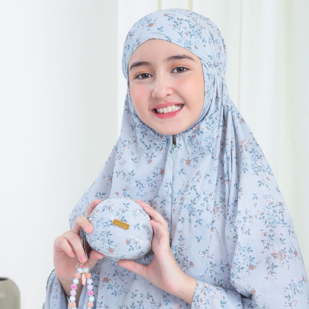Mukena Traveling Mini Pouch Anak Perempuan Usia 6-12th Resleting 2in1 Parasut Motif Kombinasi