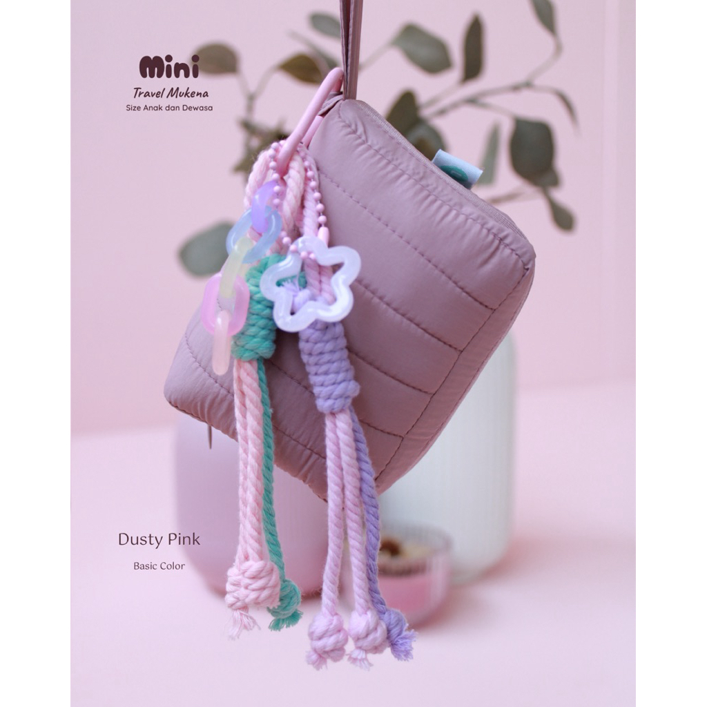 Mukena Traveling Mini Pouch Premium Basic Colour (2in1 Resleting Dagu) Anak dan Dewasa dengan Sajadah Muka Korea Soft Free Gantungan Tas Cantik