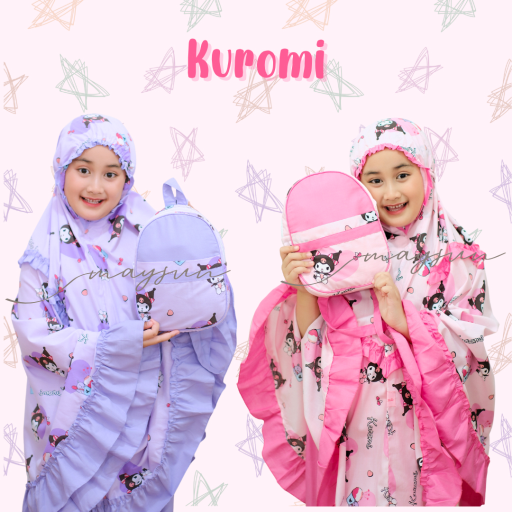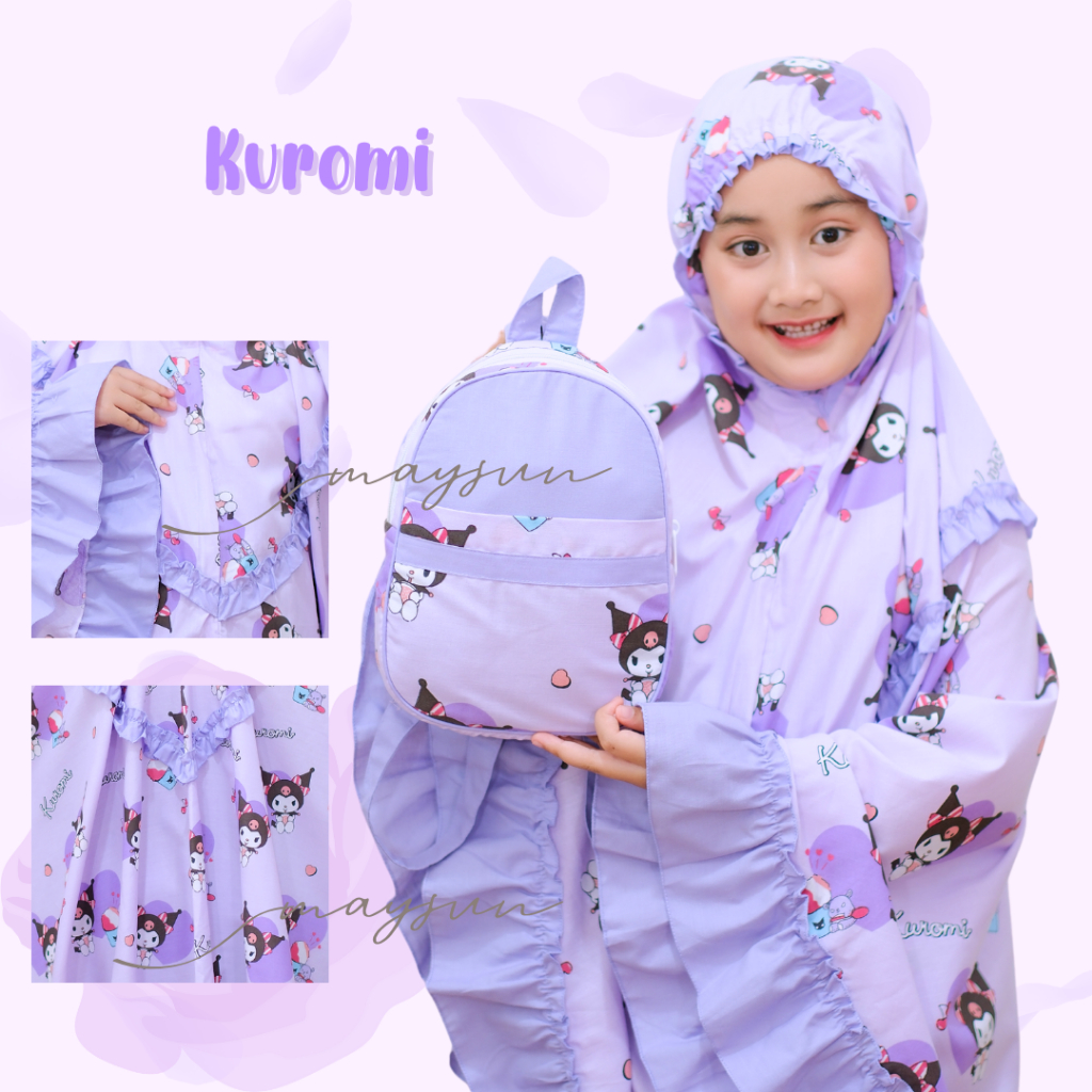 Mukena Anak Karakter 3in1 Kuromi Lilac/Pink Free Tas Ransel Dan Sajadah Muka