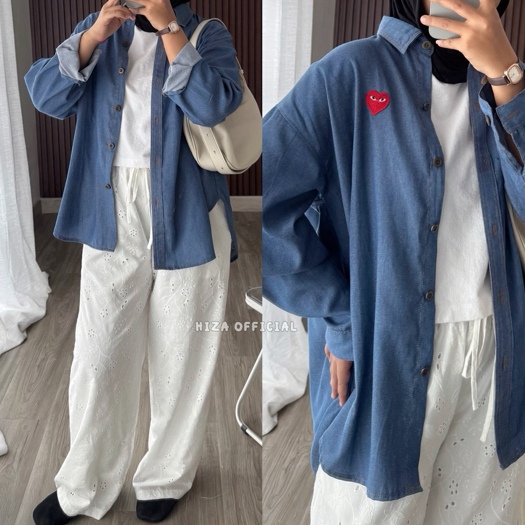 Hiza - Viona Shirt | Kemeja Denim Oversize | Kemja Terlaris | Kemeja Wanita | Kemeja Oversize