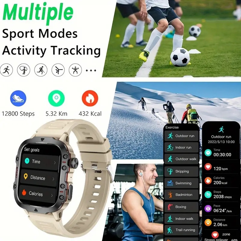 LIGE Jam Tangan Pintar Tahan Air 3ATM Asli Pria Luar Ran 100+ Olahraga Deteksi Oksigen Darah Layar 1.96 Inci Panggil