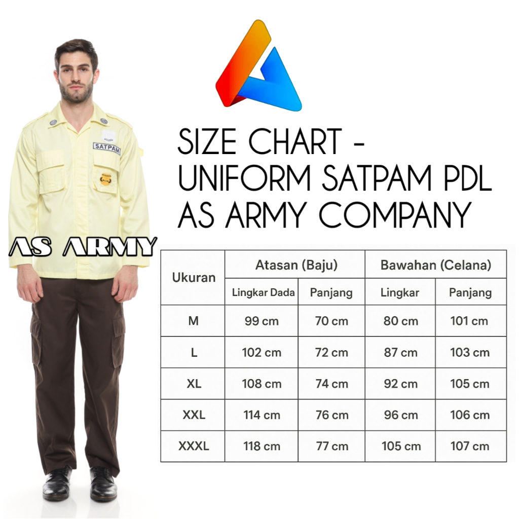 PAKET LENGKAP SERAGAM SATPAM PDL PDH SERAGAM SECURITY TERBARU CREAM KREM PDL SATPAM