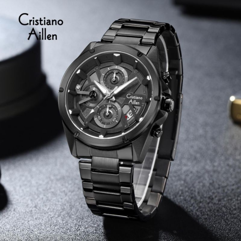 Jam Tangan Pria Cristiano Aillen Original Chrono Aktif Semua 8895
