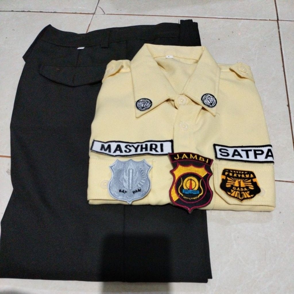 SERAGAM PDH SATPAM KREM BAHAN GAIYA UKURAN M..L.XL.XXL XXXL XXXXL XXXXL
