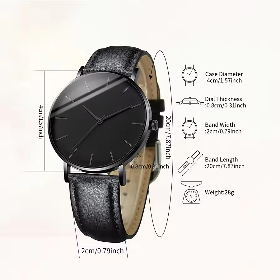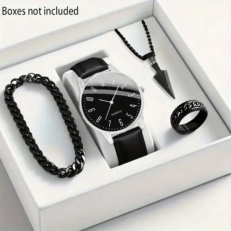 4pcs Jam Tangan Pria Bertenaga Kuarsa Dengan Dial Bulat Dan Tali Kulit Dilengkapi Dengan Set Kalung Dan Gelang Kasual Un