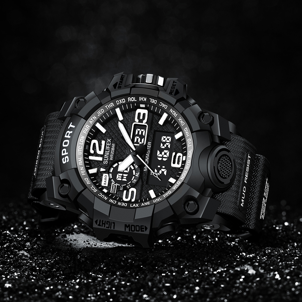 Sunlifex Jam Tangan Pria Digital Olahraga Kasual Tali Silikon Jam Tangan Cowok