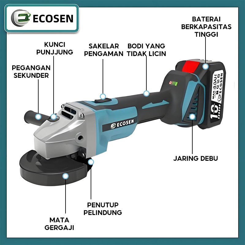 ECOSEN Gerinda Baterai Gerinda Cordless Gerinda Cas Gerinda Tangan Baterai Angle Grinder Gerinda tangan Gerinda Cordless