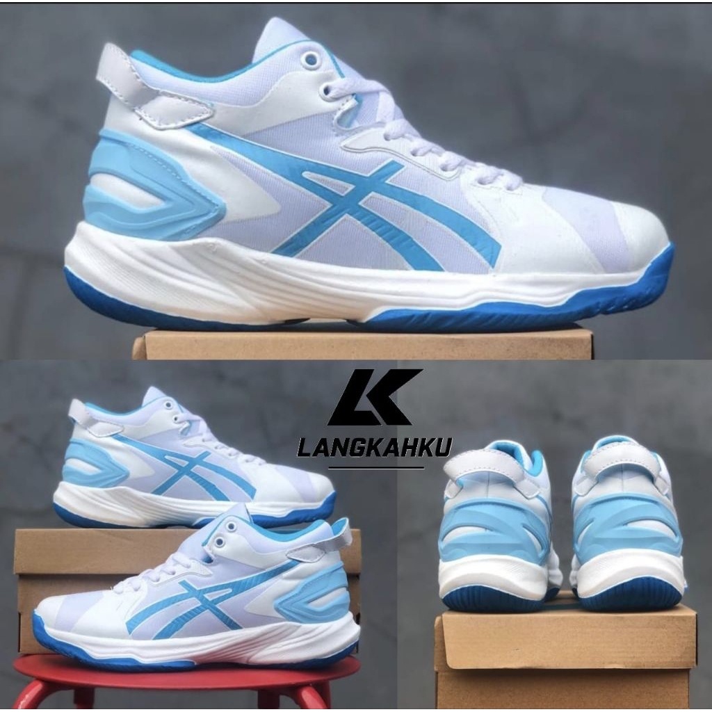 Sepatu Voli Cewe Putih Biru Gel Bru st / Sepatu Olahraga Voly Wanita Terbaru Empuk Ringan Di Pakai 36-40