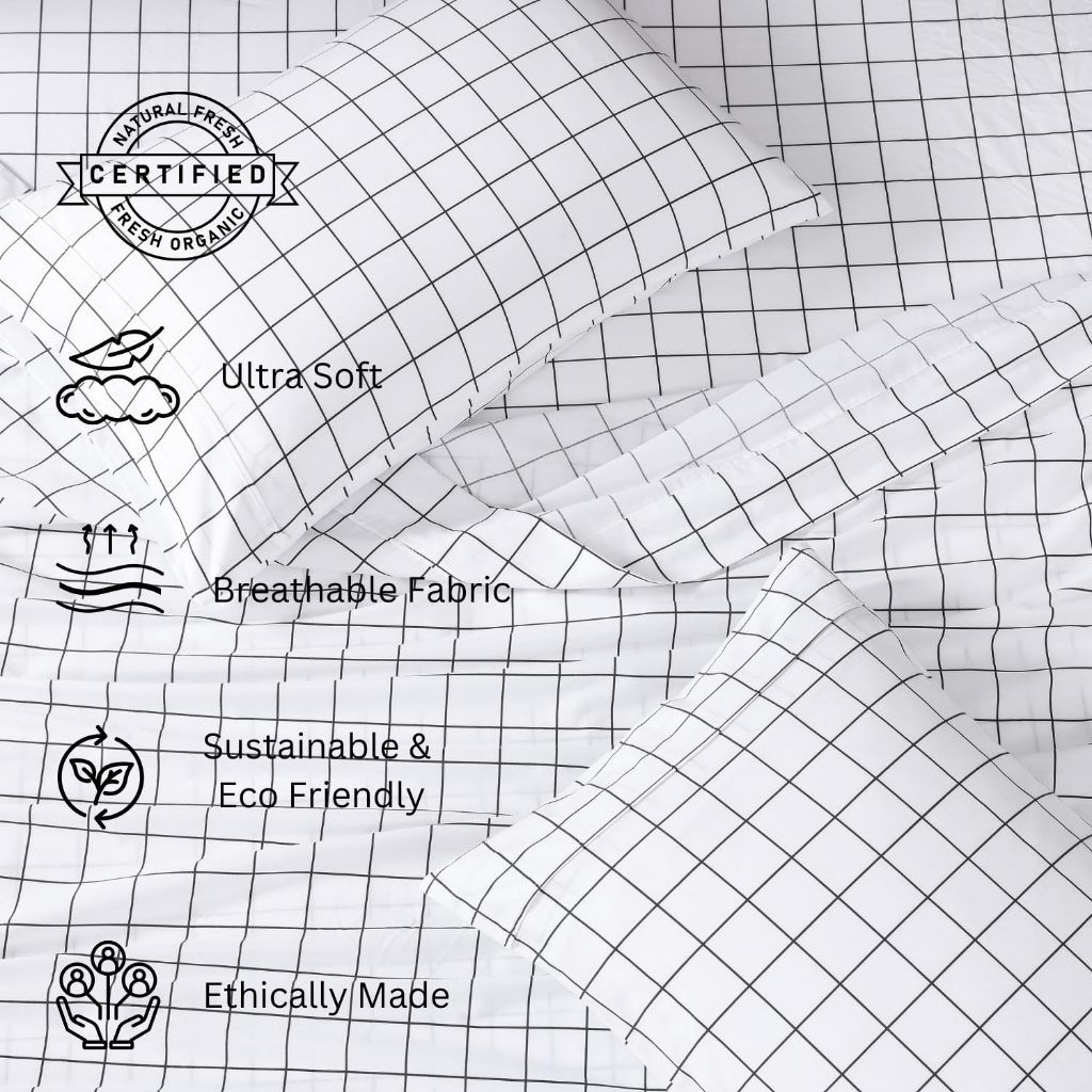 Bedcover 1 Set /Bedcover+Sprei Motif Kotak-Kotak Aeshtetic Minimalis Dekorasi