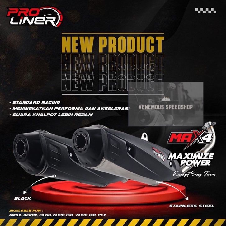 Knalpot Standar Racing Proliner MAX 4 Vario New / Nmax New / Nmax Old / Pcx 150 / Pcx 160 / Aerox Old / Lexi /Fazio /Sou