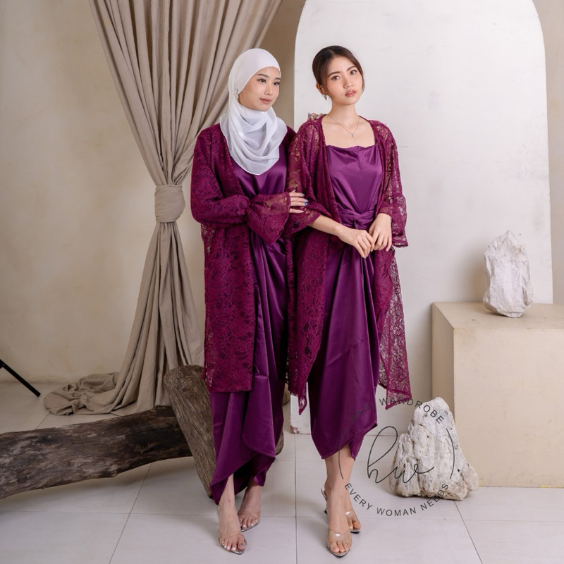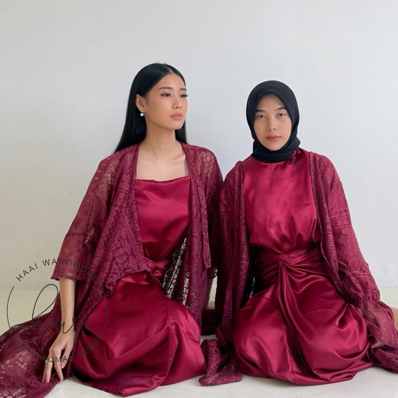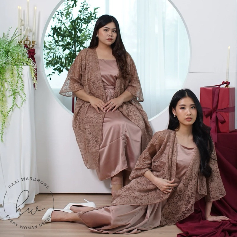 Hw - Bernice Set - 3003 - 3In1 Set Cardigan Tanktop Wrap Skirt Baju Kondangan Formal Brukat Satin