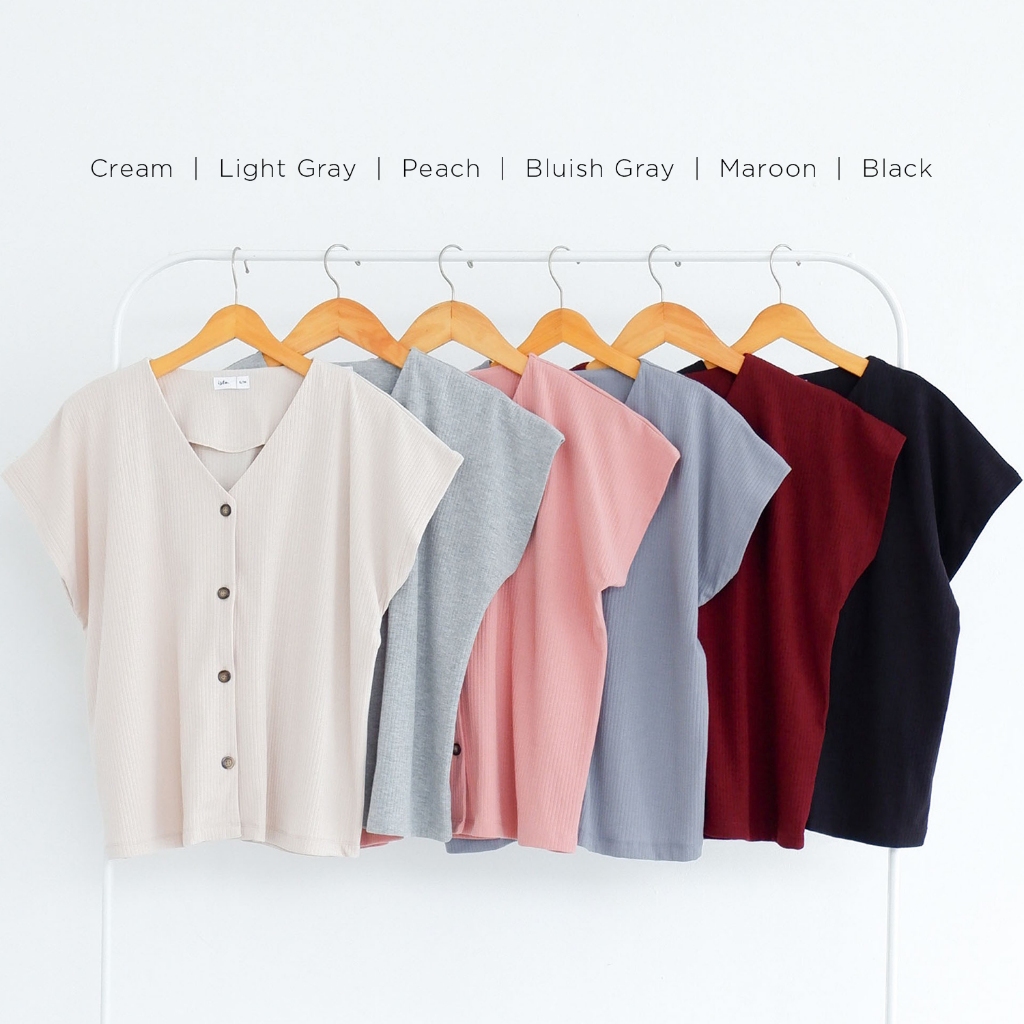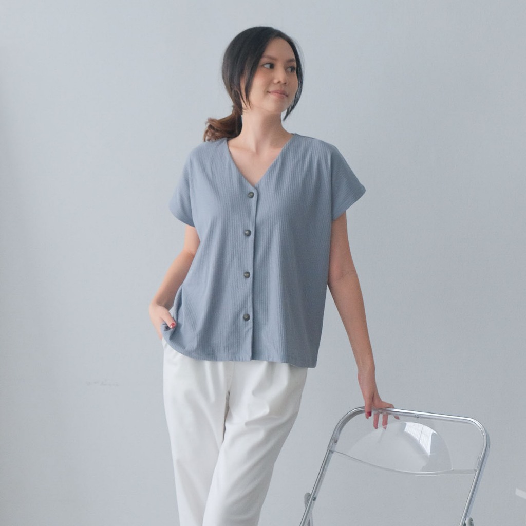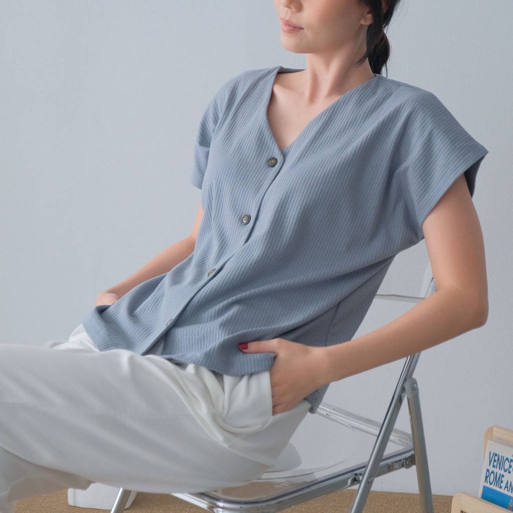 Isla Lena Top - Atasan Wanita Lengan Pendek - Kemeja Wanita - Rib Knit Cotton Baju Wanita - Kemeja Kerja - Kemeja Casual