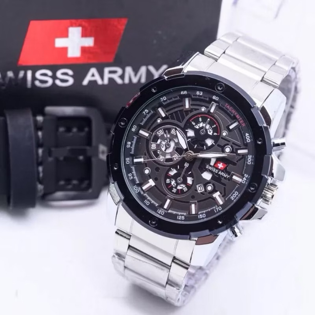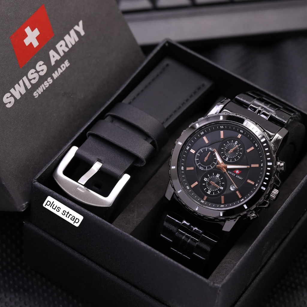 READY Jam Tangan Pria S359A Tanggal Aktif Rantai Stainless Free Box Ori , Tali Kulit & Batrai ( )