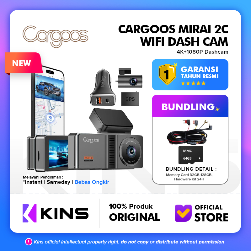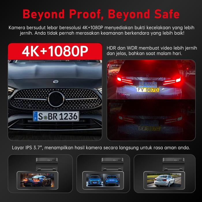 Cargoos Mirai 2C Dashcam 4K + 1080p GPS Wifi G-Sensor Loop Recording Kamera Dashboard Mobil Car Dash Cam